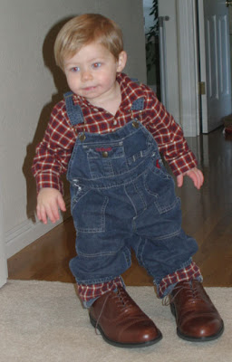 Kyle's been having fun lately trying on everyone else's shoes, or wearing his daddy's nice button-up shirts. With how quickly time is flying, I am sure that it won't be long before he truly is wearing these clothes! But in the meantime, they make for some awfully cute photos.